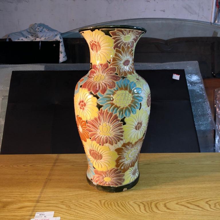Floral Pattern Ceramic Vase Pasu Seramik Corak Bunga Furniture Home Living Home Decor Artificial Plants Flowers On Carousell